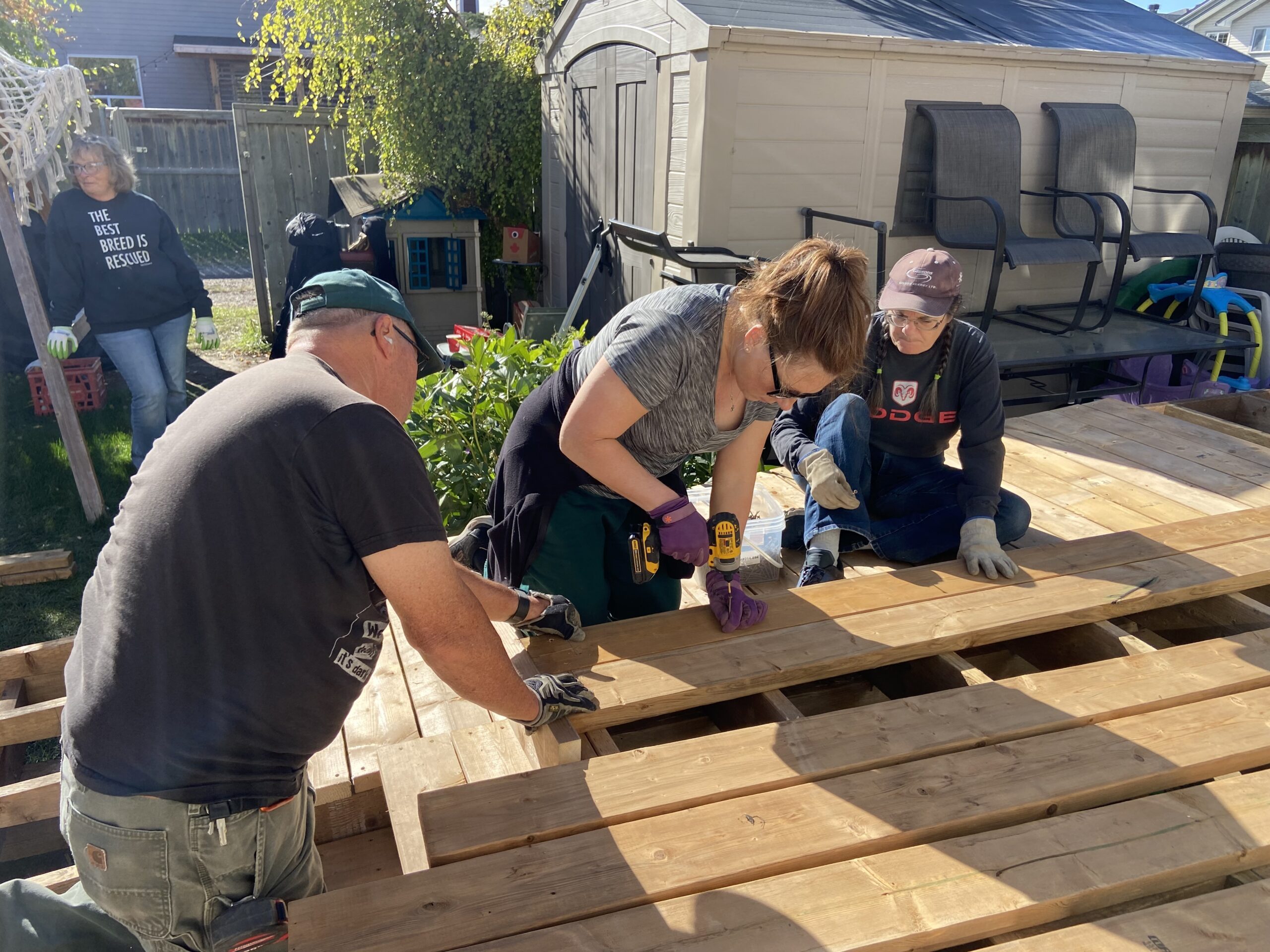 ARK partnered with SHIFT Accessibility Contractors Ltd. and Northmount Kiwanis to provide the renovation work. They installed a porch lift at the front of the home for safe and easy wheelchair access, a new porch platform and stairs, as well the backyard deck was rebuilt to allow Olivia to access and enjoy outdoor space with her family. The deck railings were completed in early 2024.
